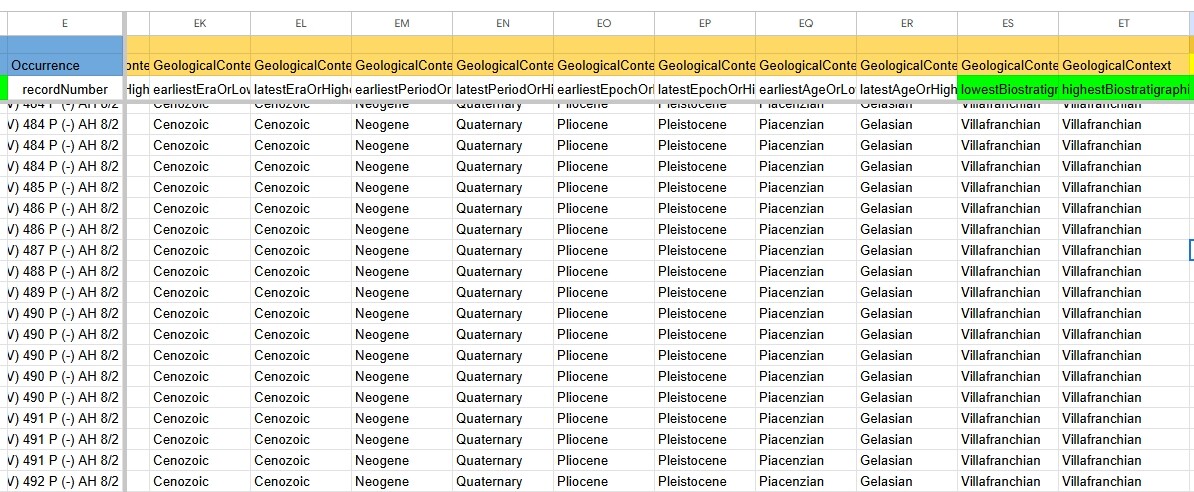 Our goal is to export the full array of Chronostatigraphy (for both Earliest-Latest combinations) as displayed in the DwC Geological Context category