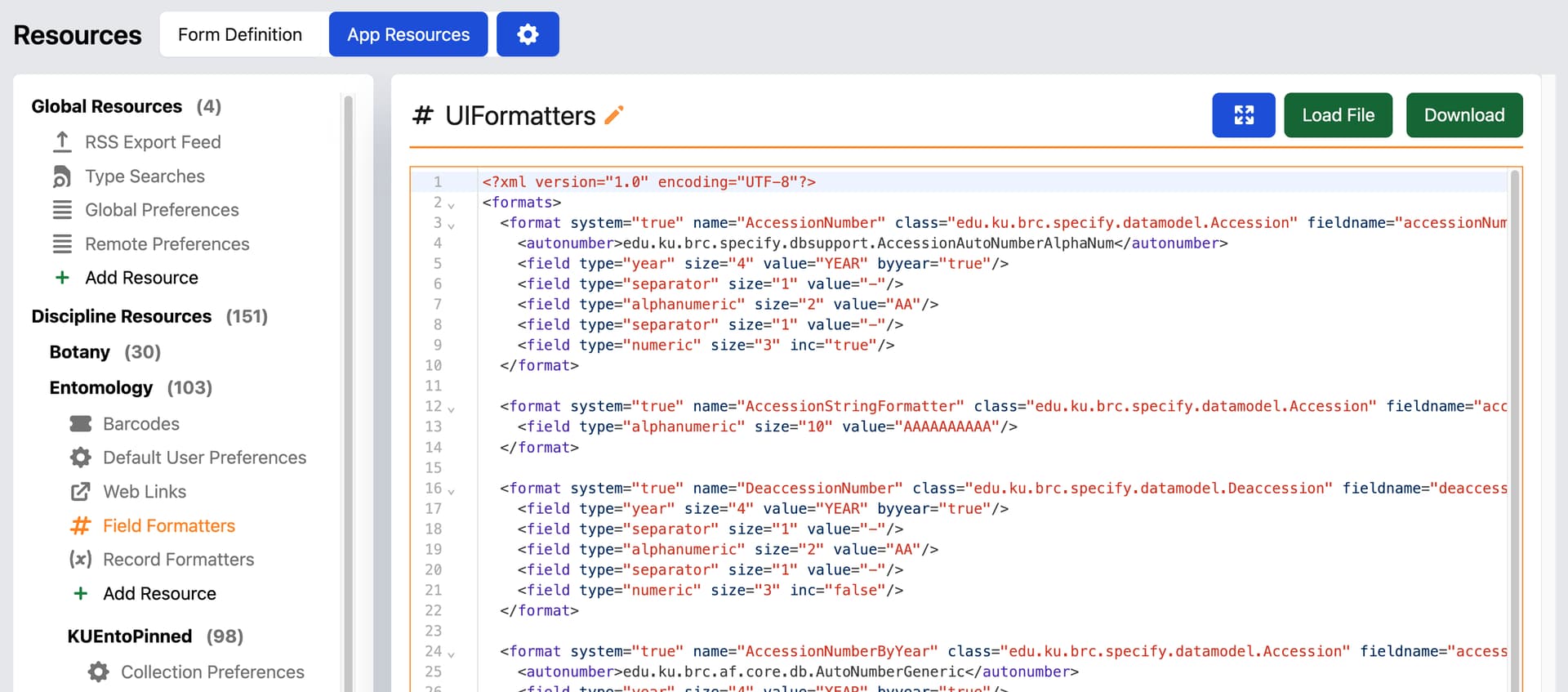 From here, you need to navigate to the # Field Formatters resource. This is at the discipline level in most databases. If you do not see it, you can click